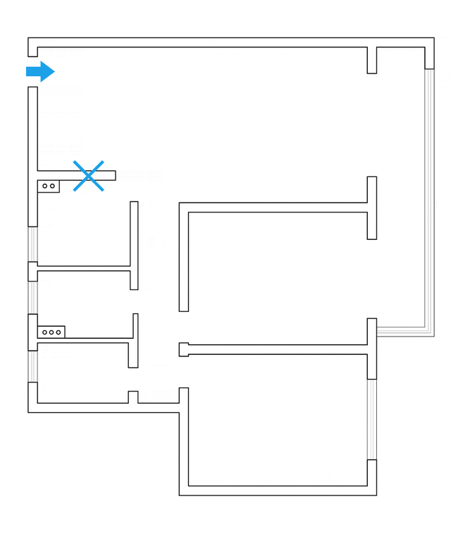 右手边敲掉了原来的厨房隔墙,打通餐厨空间,让原本的厨房光线和客厅光线能达到入户区域,补充了这部分空间的采光不足。