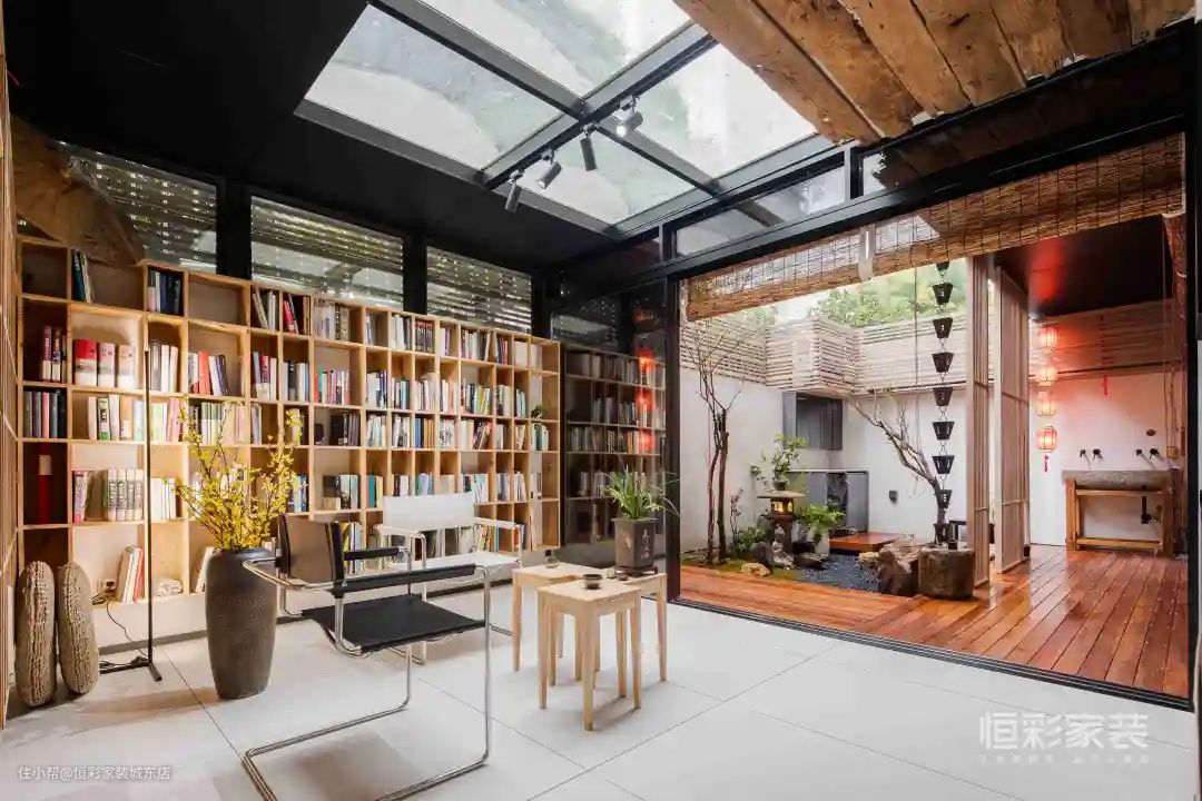 如果户型带小院,那一定要利用好了,小院书房的设计一定不要错过。小院和书房互通,玻璃隔而不断,营造静心学习的意境。