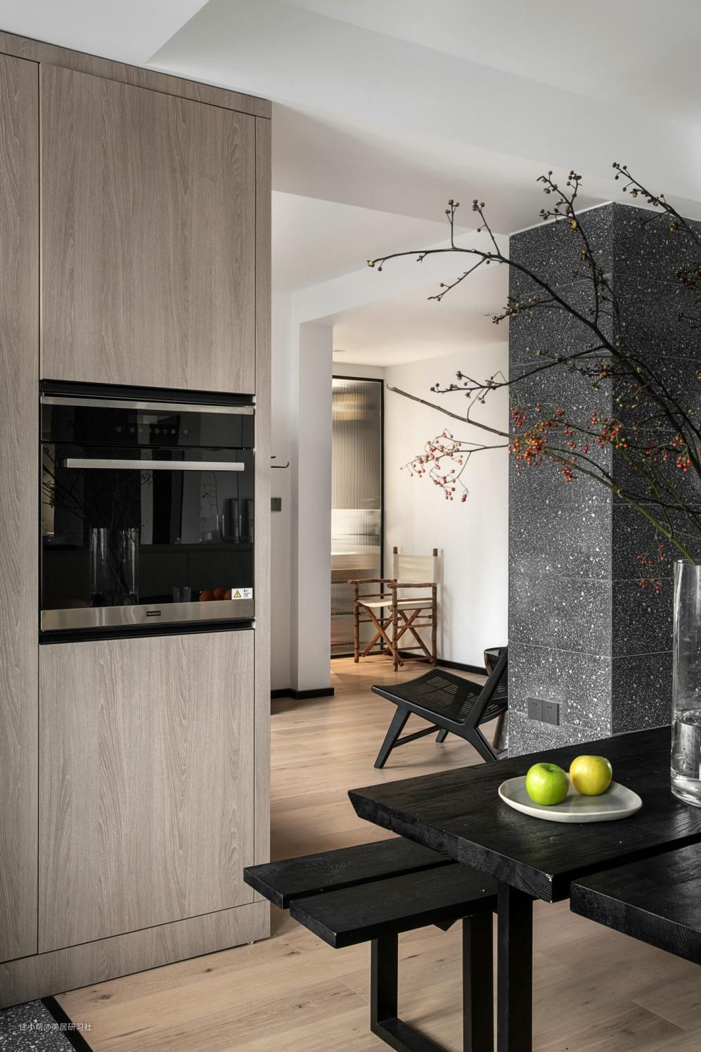 经过这样优化设计之后,厨房和餐厅都变得好用,U型的橱柜设有集成灶、电器高柜等,还做了更符合人工体学的高低橱柜,在细节方面做得很到位。米白色的台面和木色柜门搭配也与整体色调相一致,让整体效果更和谐!