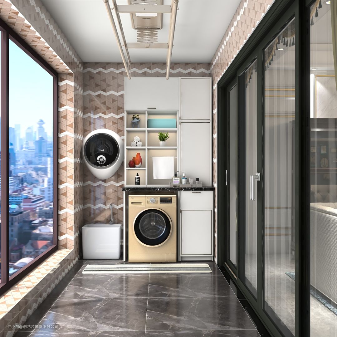 功能性阳台,即洗衣房式阳台,这也是我们最常见的一种设计方式。但这种阳台很容易出现杂乱之态影响美观,为了保证阳台的整洁美观,改造时要注意储物区、晾衣区的规划。