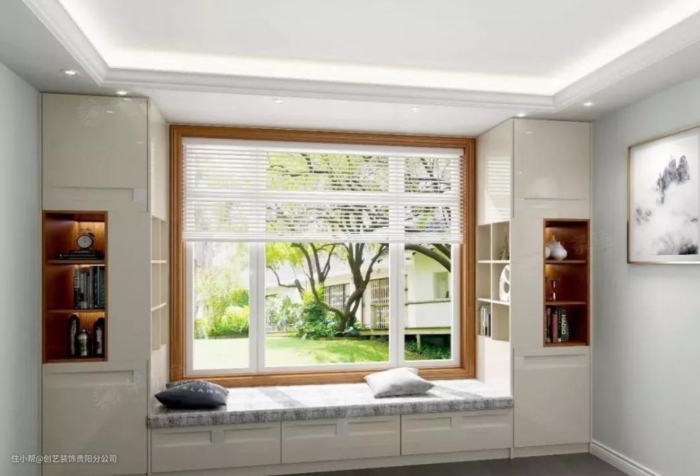 若是想布置成mini客厅式,那可以做个木质地台,摆上懒人沙发、小书架、小边几等,或者定制榻榻米,看书、晒太阳都很舒适。