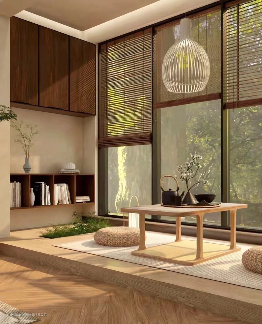 若是喜欢喝茶,也可以将阳台专门设置为品茗区,阳台两侧做一些收纳,中间布置上茶桌茶椅,也很有格调。