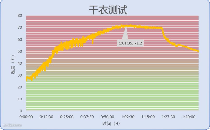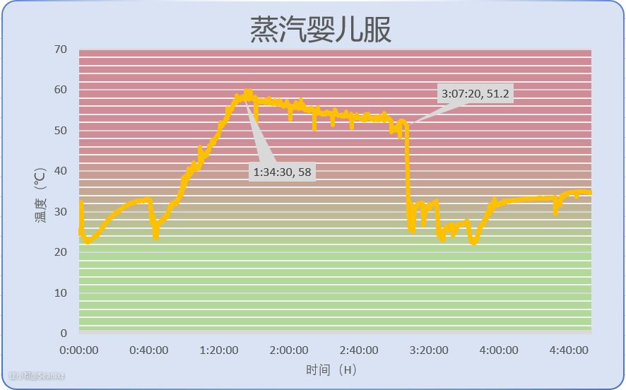 使用温度记录仪测试了一下60℃蒸汽洗功能。