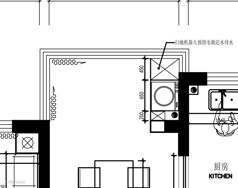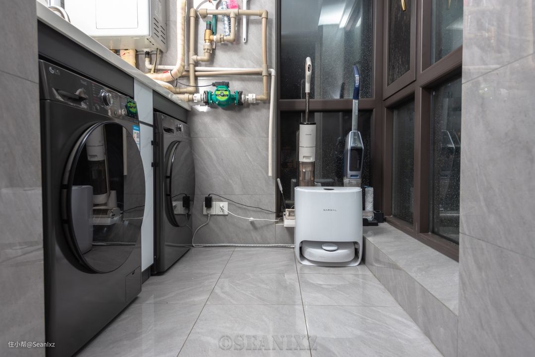 这个单独封闭的位置就专放洗衣机、扫地机、拖地机、洗地机等清洁工具还有空调地暖热交换器设备。