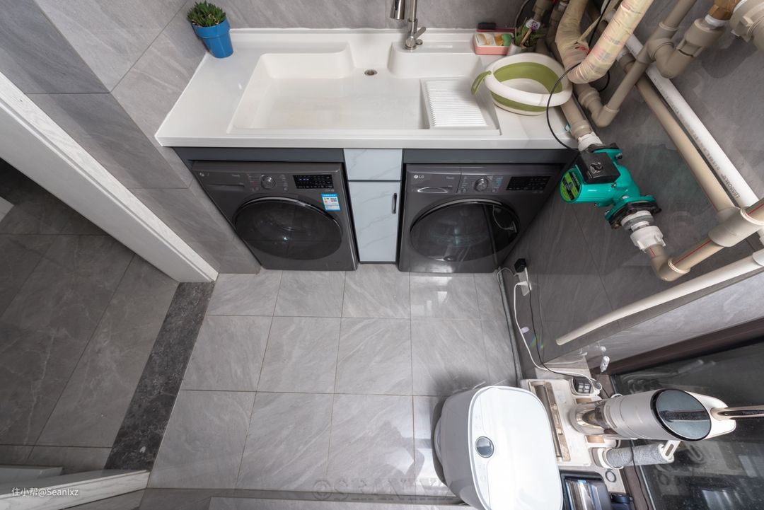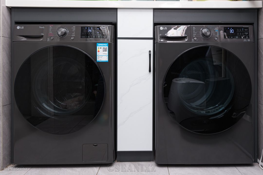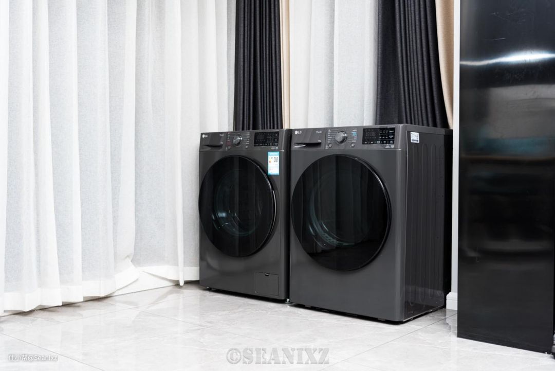 能实现这样的设计还得靠给力的洗烘套装,我自己新房入手的是一套LG洗烘套装,在装修公司用积分抽奖兑换的,当时属于看大牌闭眼入的,目前使用一年多了,确实完美符合无生需求,所以今年给妹妹装修的新房也购入了新款LG星云黑洗烘套装,使用了一个多月。