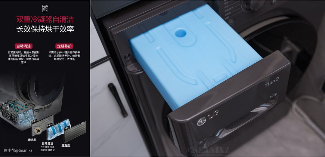 重点是LG的干衣机,有个特别的功能:冷凝器自清洁