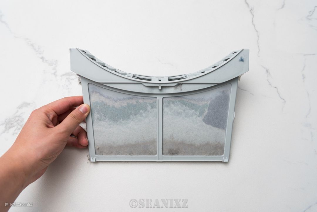 日常只要清理一下干衣机的滤网就可以了,这是200目的双重绒毛过滤网,过滤精度比较高。