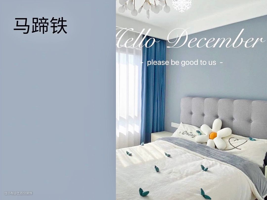 这个颜色偏灰偏蓝,适合卧室背景墙或男孩房。