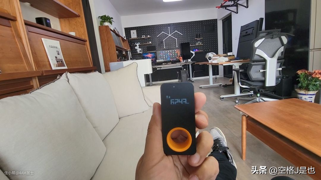 但静态检测直线距离足足4米,所以最适合它的安装方式我称之为“贯穿式安装”,胸口或头部高度,放在长方形房间“宽”的中间位置。这样两米静态半径、4米静态直线、8米触发,就能把整个房间所有会动的东西监控到。