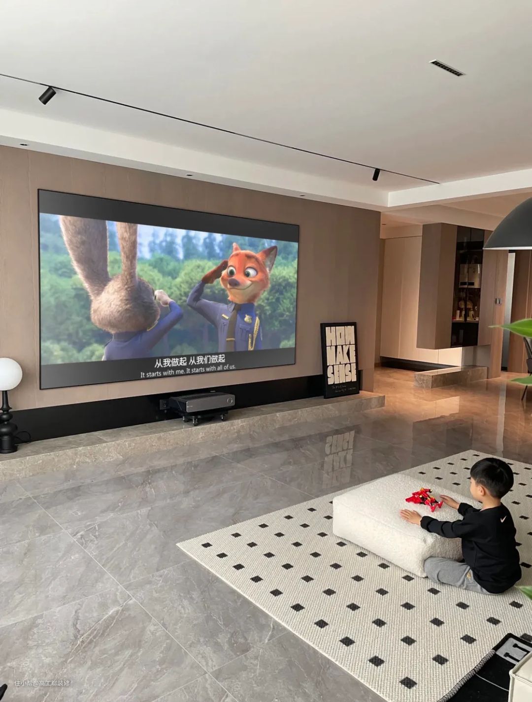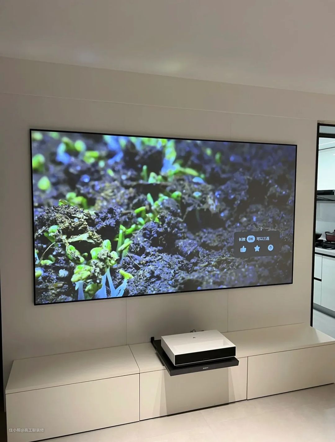 ③在选择电视尺寸时尽可能买预算内尺寸最大的,最好是挂在墙面上。