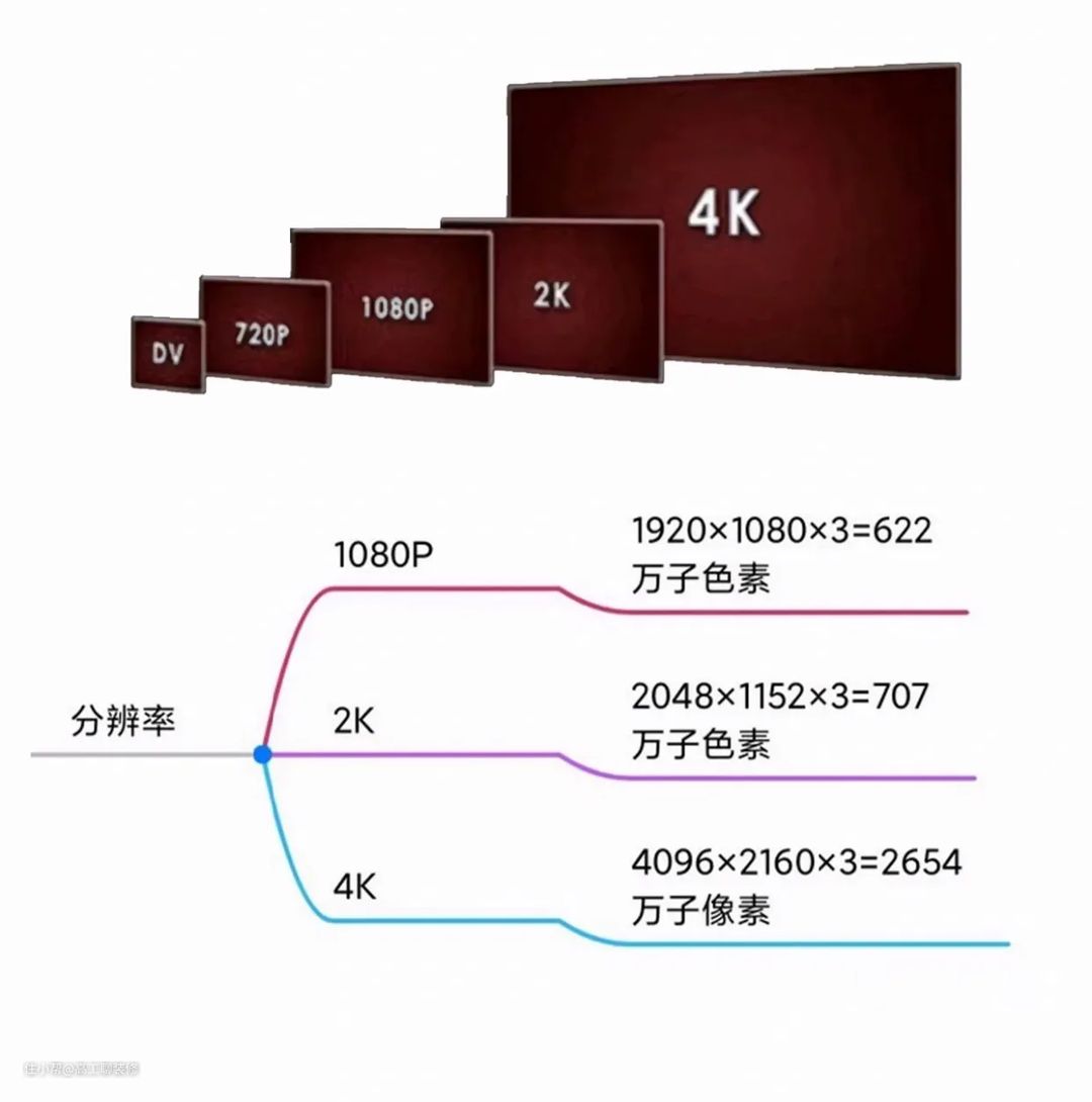 分辨率最普及常见的就是1080P、2K、4K三种,720P可以劝退了,目前4K电视就比较超高清了,所以8K目前来看性价比为零。
