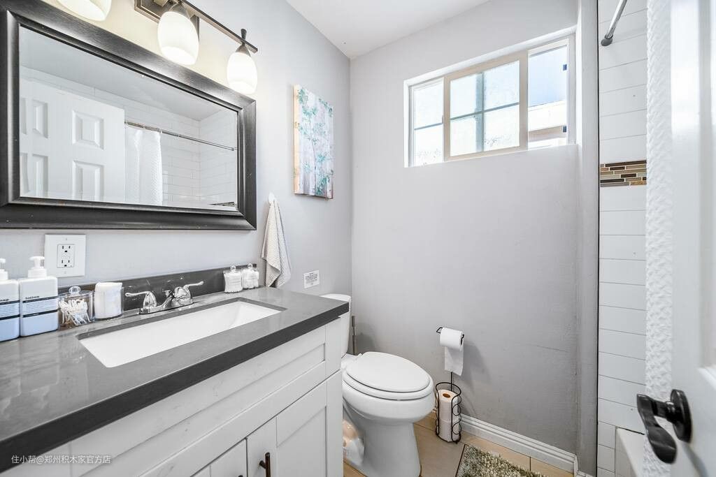卫生间延续了主题风格,没有过多的装饰,黑曜石的台面与灰色的空间搭配,简洁有质感。客卫本身面积不大,空间狭小使用不便,考虑再三后,去掉了淋浴区,将淋浴设计到主卫空间。