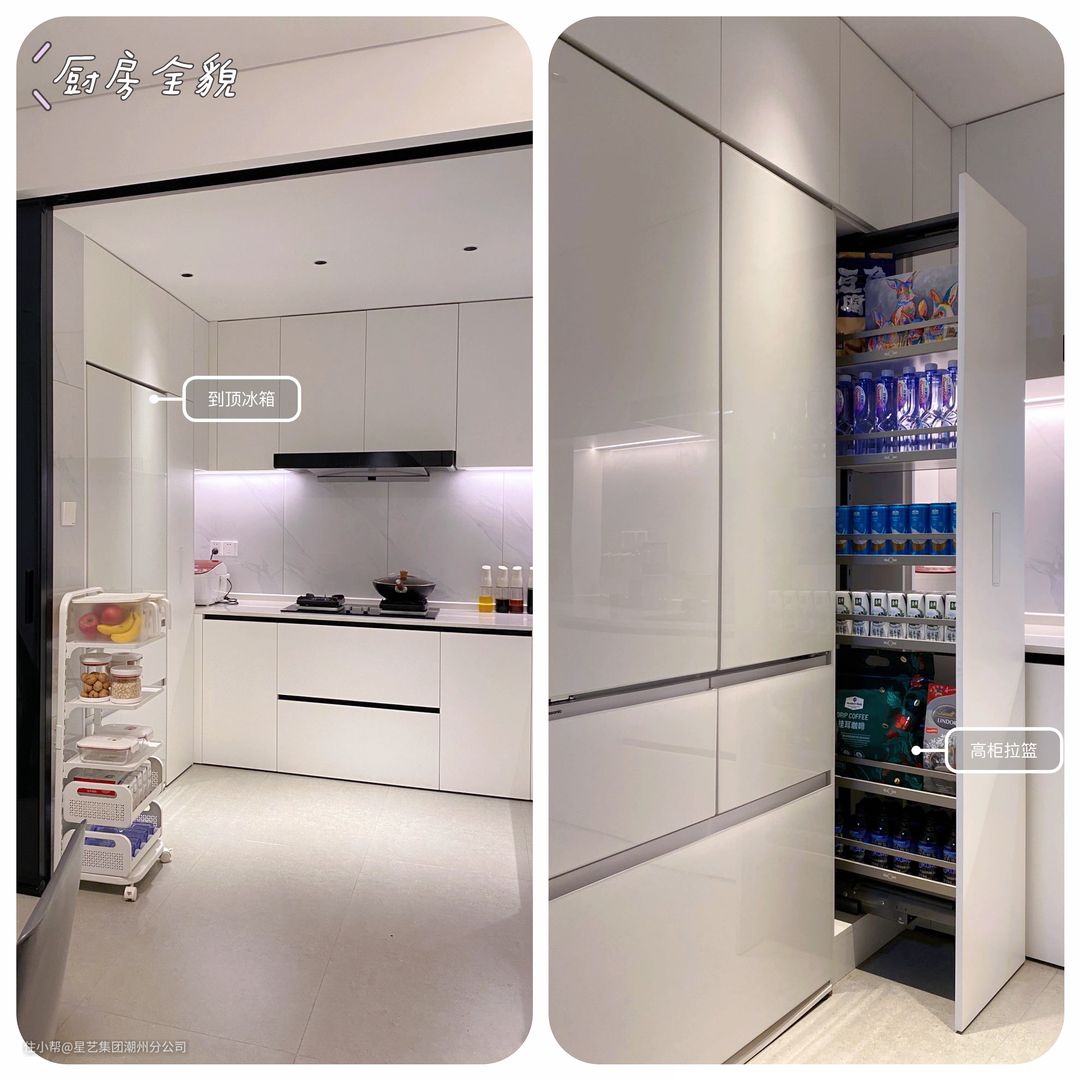 ✔️冰箱顶部做高柜,增加收纳又避免顶部落灰