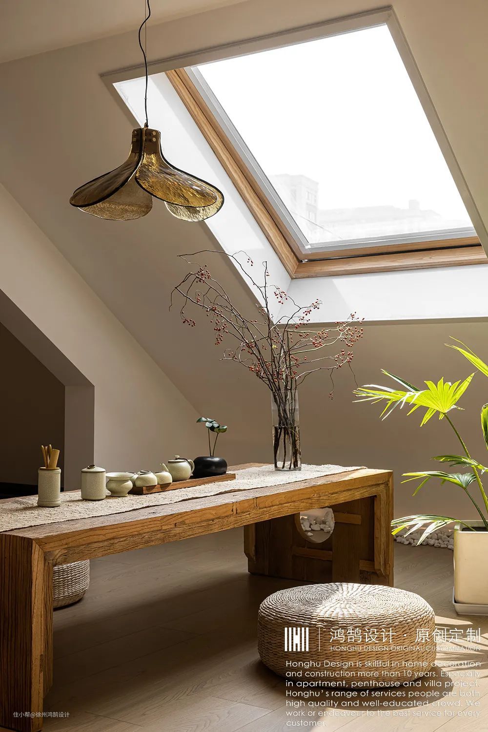 #我们在二楼开了一个天窗,整好对着一楼楼梯的窗户,所以通风也是很好,整个二楼因为有了天窗之后的采光也是很好。