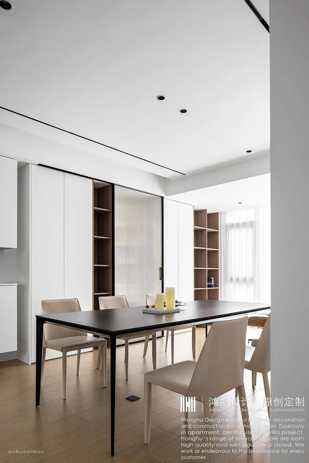 虚实结合,柜子分割成鞋柜收纳。书本读物收纳,衣帽柜收纳,餐厅零食杂物收纳。让整个公公区域干净整洁。