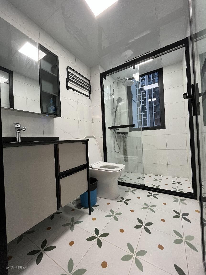 - 地面采用碎花转,整体搭配起来,温柔又清新,给卫生间带来脱胎换骨的效果,溢出屏幕的好看;