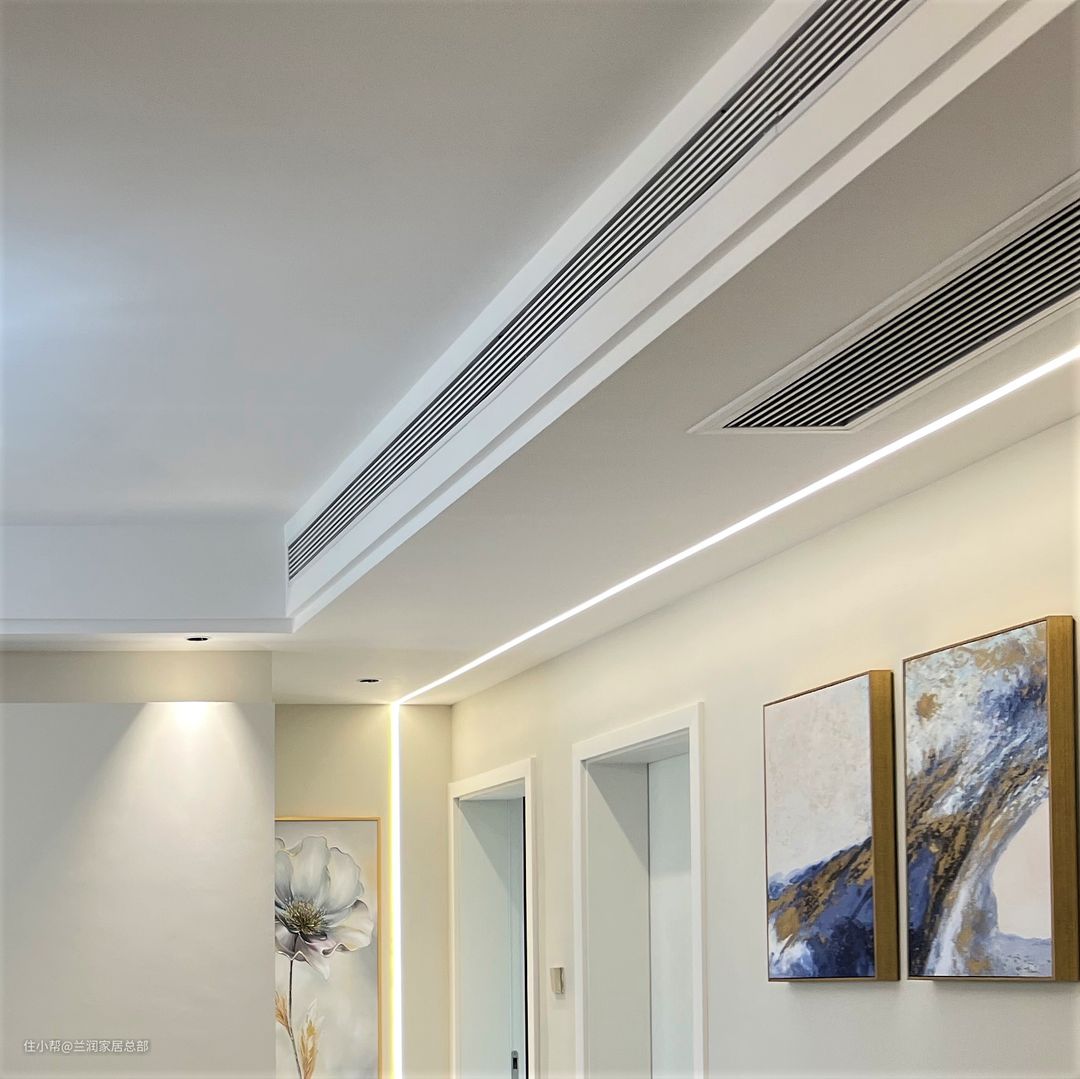 需要注意的是,为了避免大面积的压迫感,就算是安装中央空调,也要采用局部吊顶,例如简约双眼皮吊顶。一般情况下,吊顶的高度是在中央空调内机的厚度上增加50-60mm。