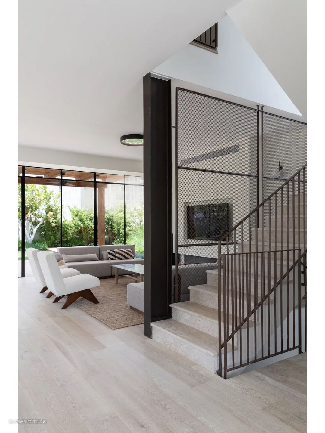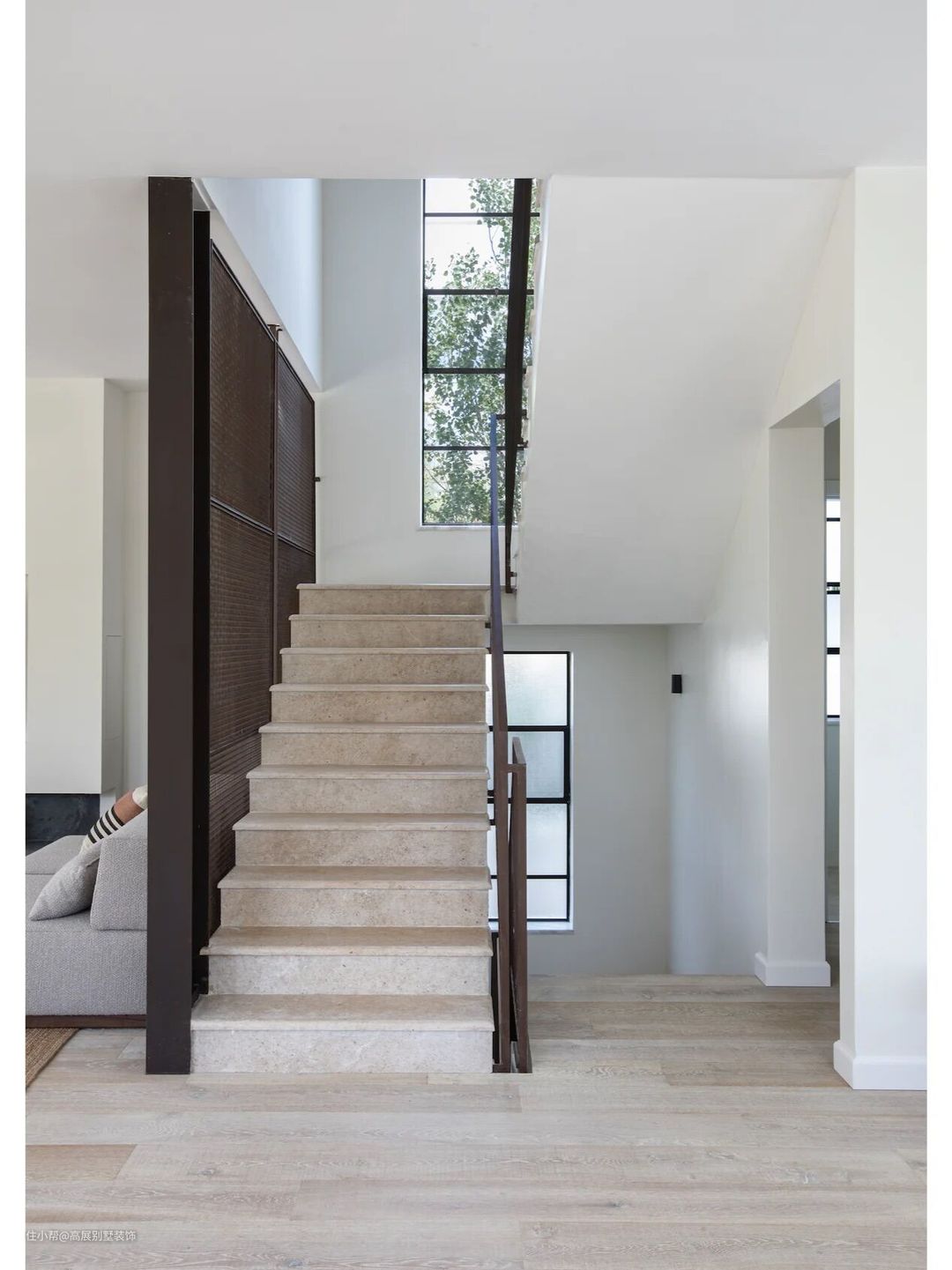 他家「花样百出」的楼梯设计,不服不行!高展别墅装饰2023-05-13不追求极致的侘寂美学,不追求标签化的风格,将钢铁结构材料以细腻优美的方式呈现,在线形楼梯扶手设计选择钢管焊接喷漆处理,格栅钢网与扁铁栏杆选择喷漆处理,楼梯整体风格素雅,体现出素朴之美。