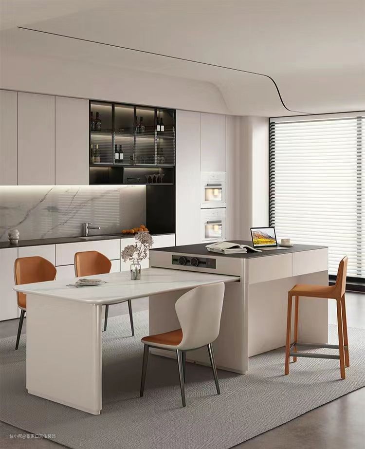 在室内设计中,岛台功能很多,即可以当成厨房操作台、吧台、餐桌等。