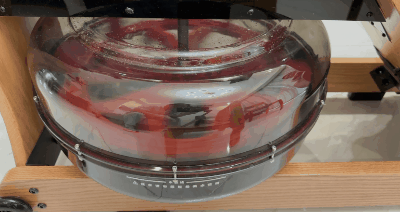 这里楼主专门想深入解释水磁双阻划船机的优势——传统的单一水阻划船机存在阻力不足的问题,根本原因就是因为被桨叶带动旋转后,水自身存在惯性,保持原有运动状态,所以除了刚启动的第一次拉动阻力最大,后续往复运动的拉力都比较小。这种不经意之间的“偷懒”,会导致锻炼效果大打折扣。