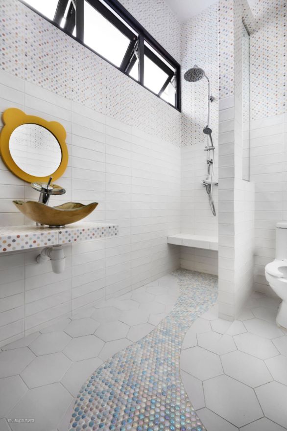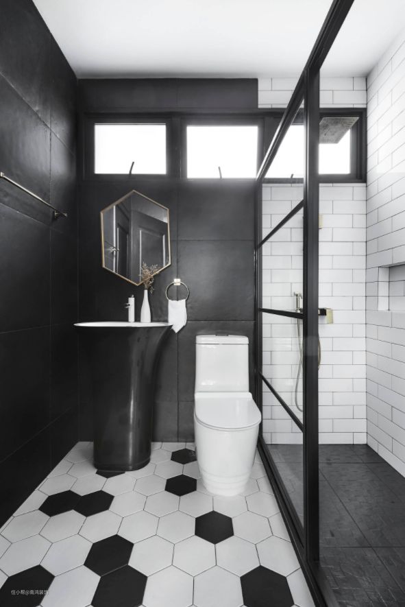 六边形砖的撞色铺设方法可以增加卫生间整体的设计感和层次感。这种瓷砖可以通过不同颜色、花纹以及布局方式,打造出各种主题和风格。同时,由于采用的是瓷砖铺设,所以清洁起来也相对容易。