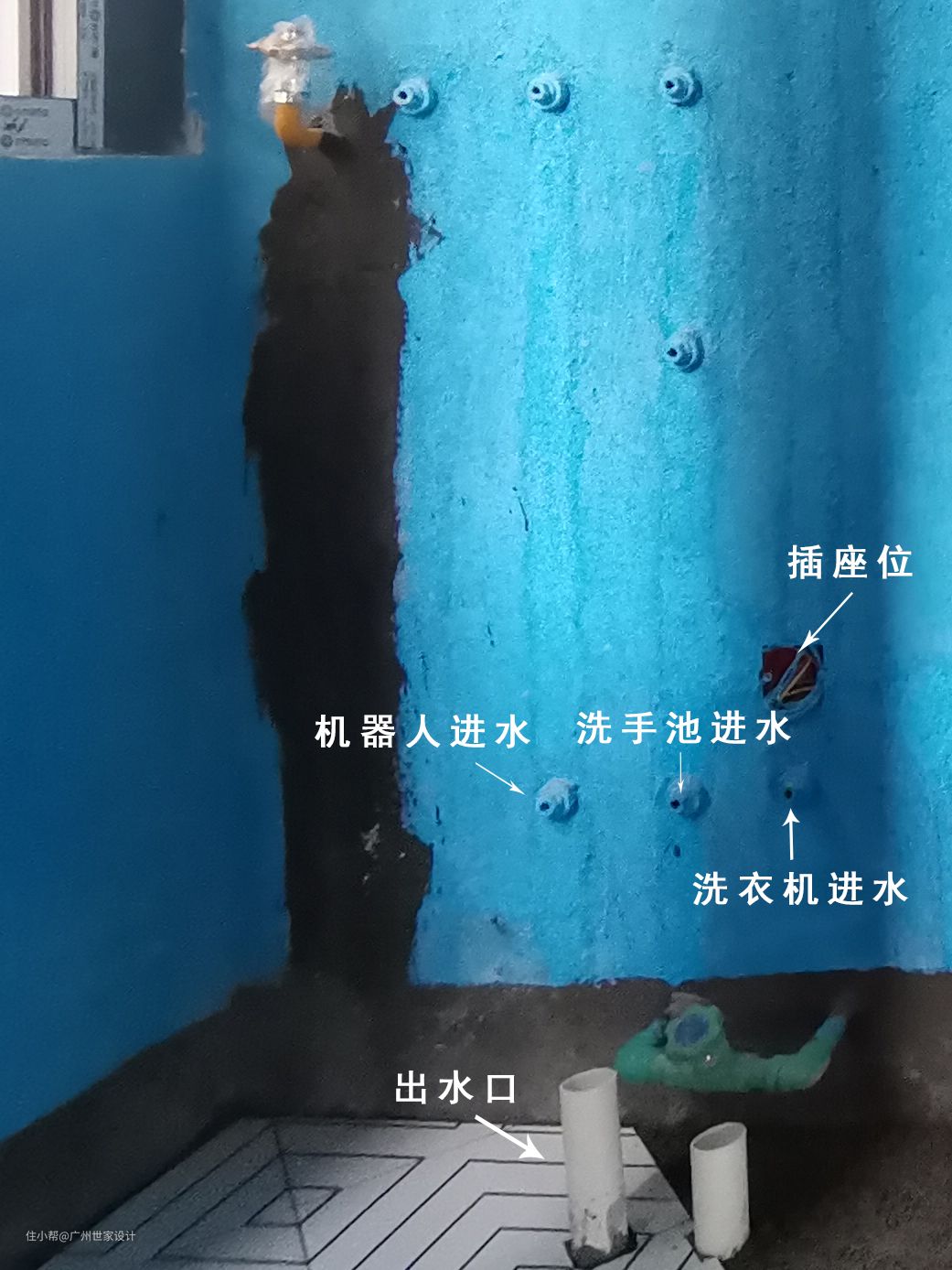 ② 下水最好走地漏,如果是预埋墙排,出水口离地高度建议低于30cm(15cm最佳);