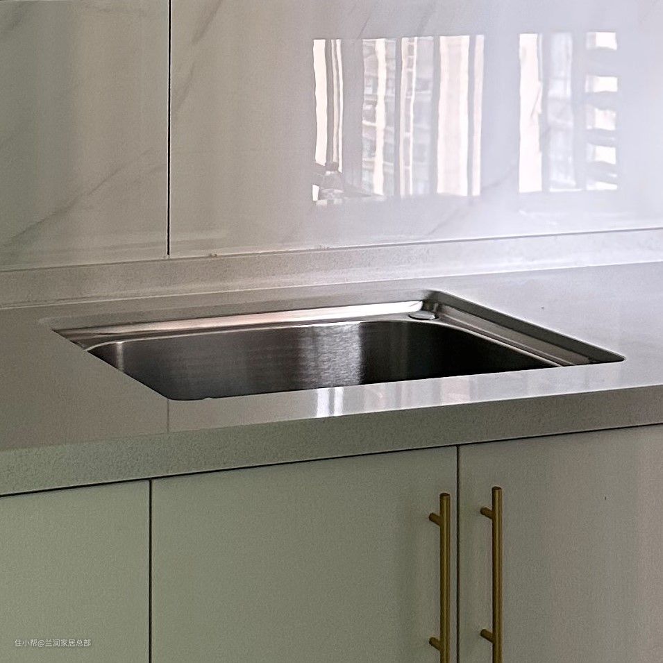 如果选择不锈钢水槽,建议选用拉丝面工艺,耐刮耐磨易清洁,同时使用时不会留下手印和水渍。