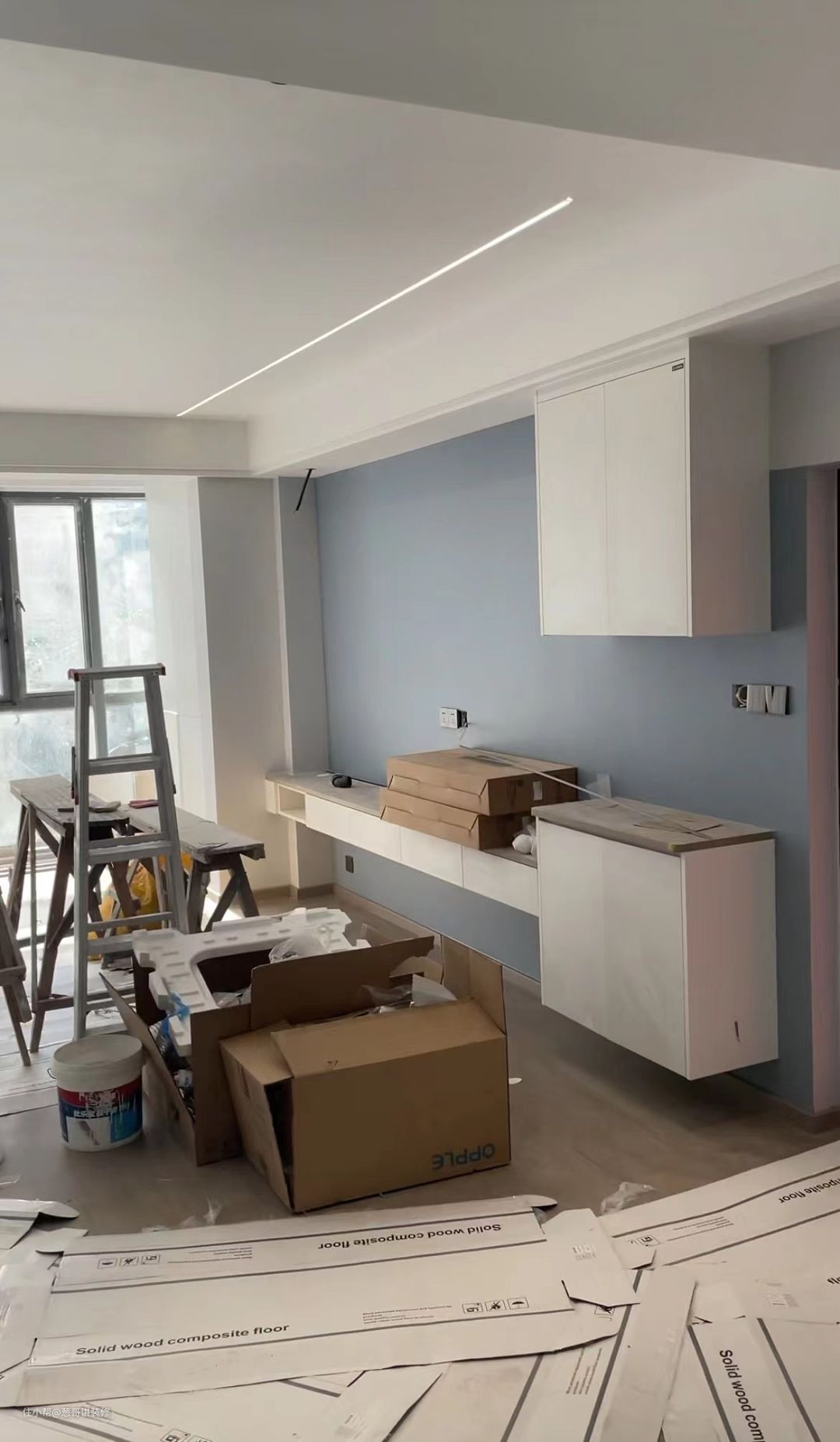 而这套工地我运用的就是目前很流行的竹木纤维墙板。选购的时候真的不能被商家所迷惑!商家都会告诉你它们的板材很环保,但是他们没有告诉你这些装饰材料上墙都需要打胶固定!为了保证牢固胶水的用量很大,很容易造成甲醛,苯,voc的含量超标,而且胶水点挂的原因,墙体和装饰板之间是有缝隙的,小强和蚂蚁很容易驻扎在这里。造价也高,局部点缀一下是还不错,真要大面积运用那可不太行。