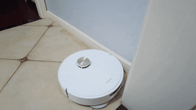 可以看到:当机器的沿边传感器检测到扫地机正在沿边清洁时,拖布开始自动向外扩展,与踢脚线牢牢贴合,从而保证沿边清洁效果 ▲