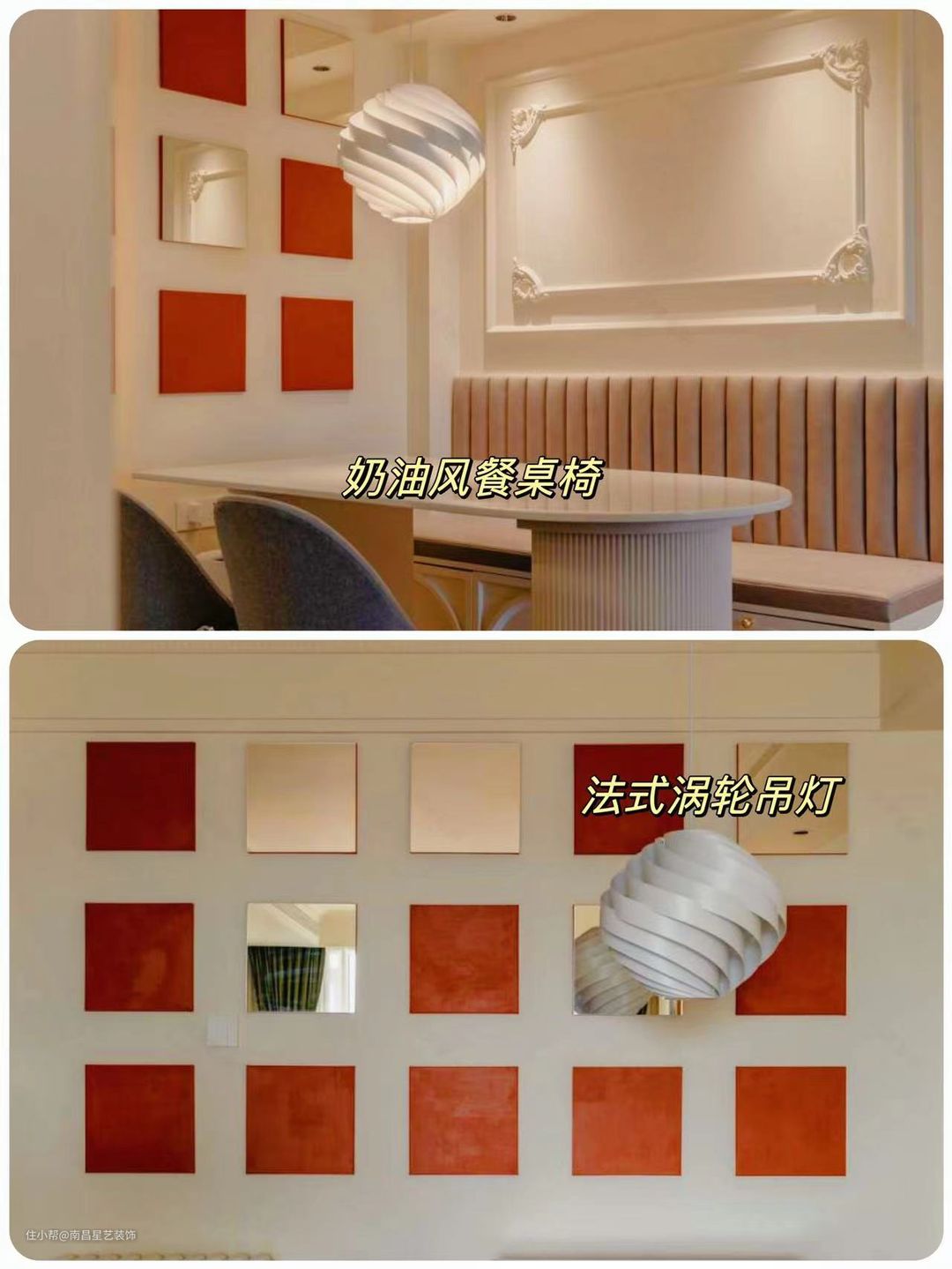 餐厅值得推荐的好物:奶油风餐厅餐桌椅,法式餐厅圆形涡轮吊灯