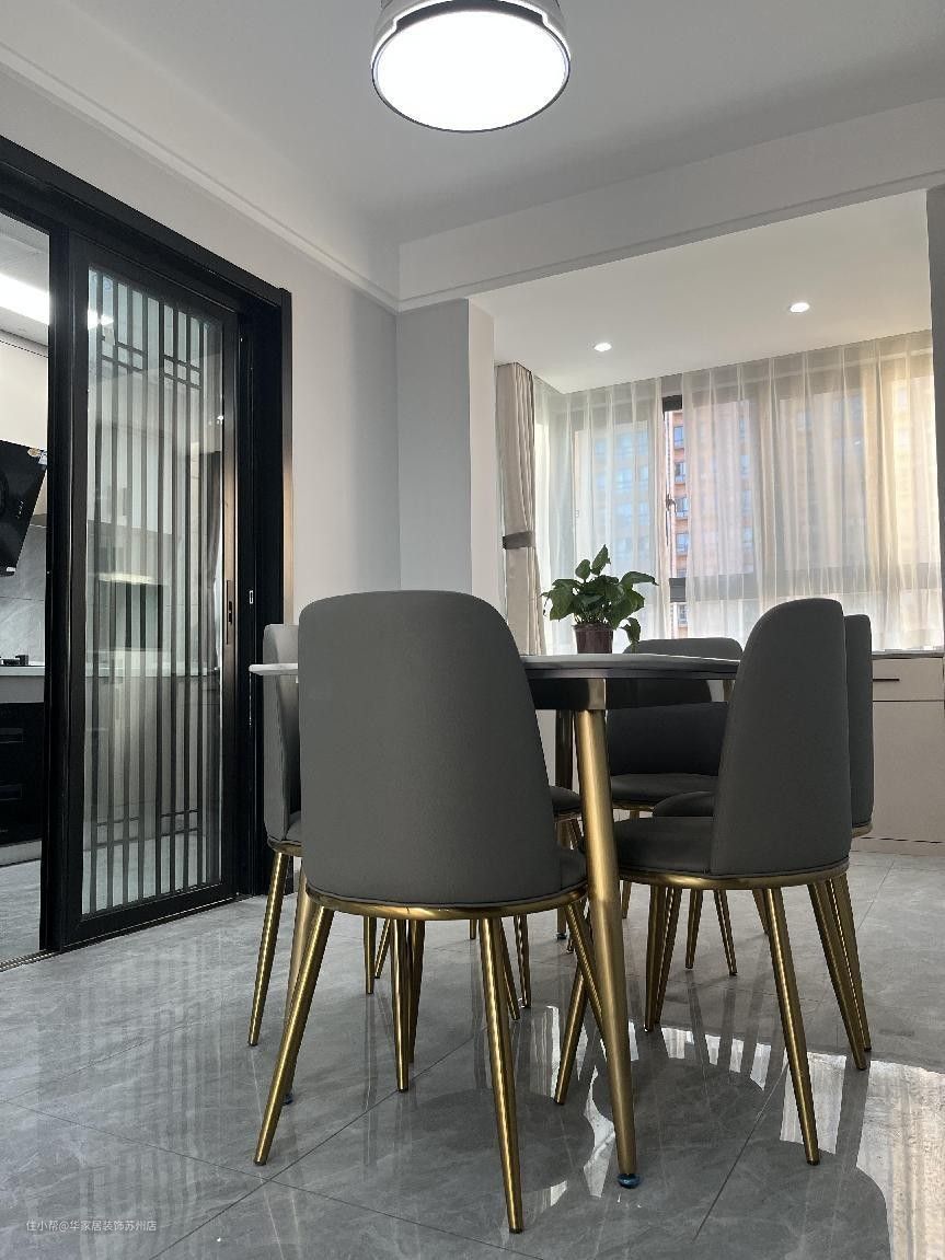 - 简单的圆形吸顶灯让整个餐厅看起来更加干净整洁,灯具的层次感和吊顶的层次感相呼应,是空间纵深感更大;