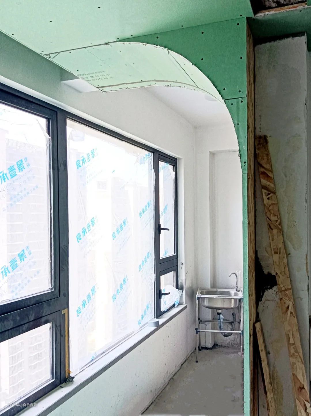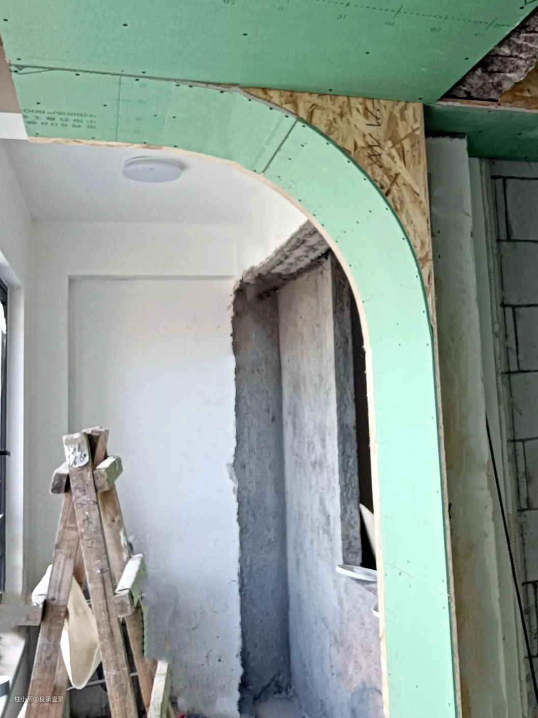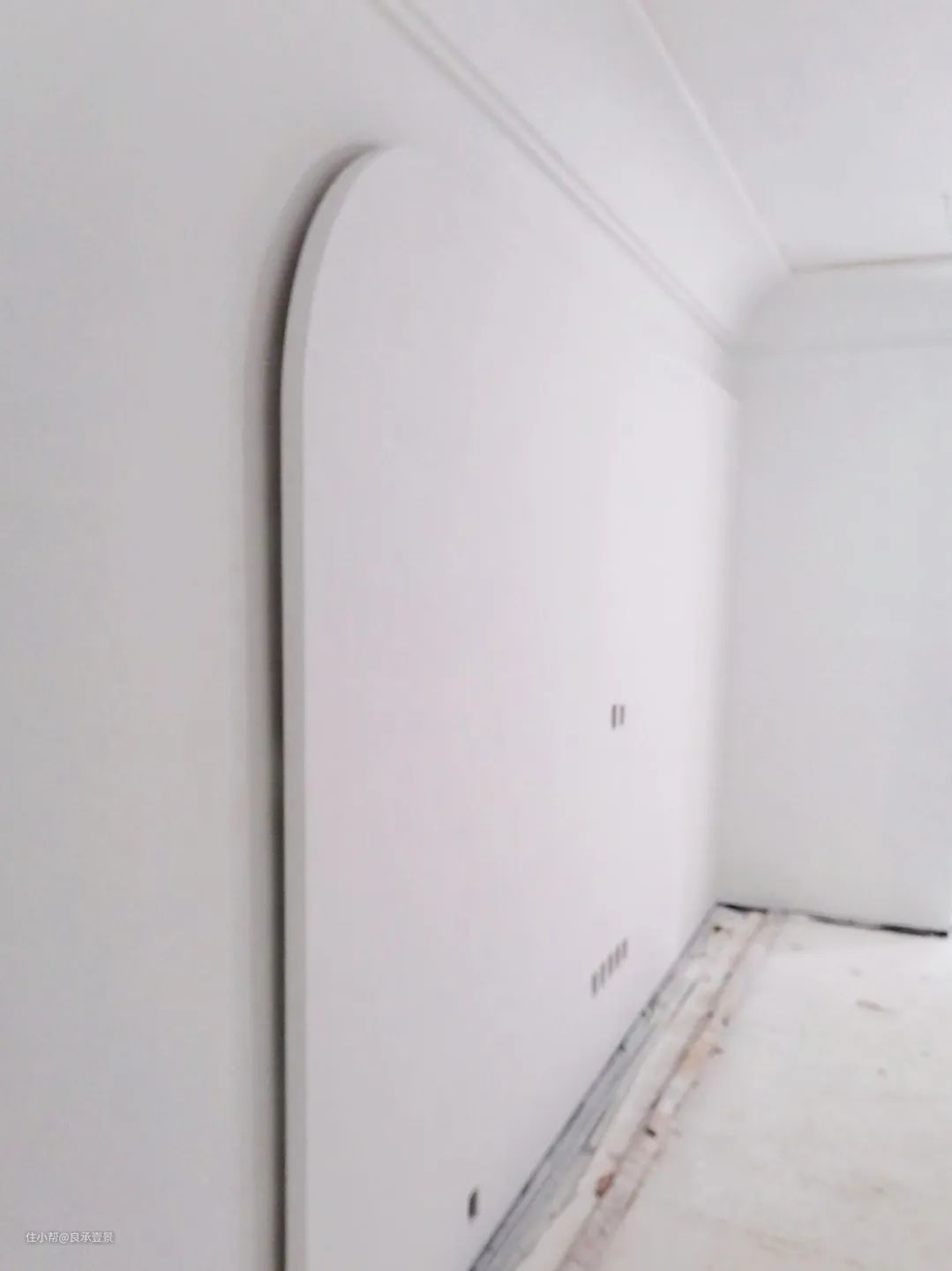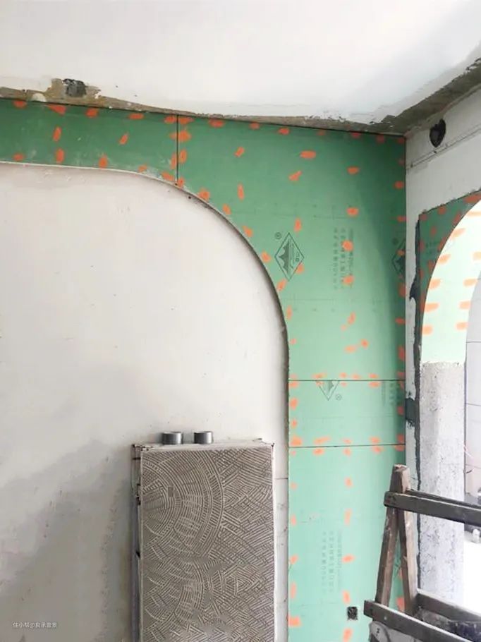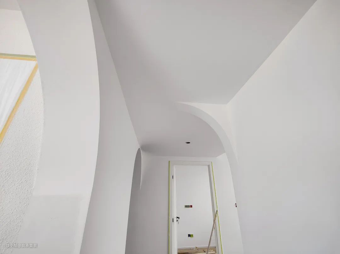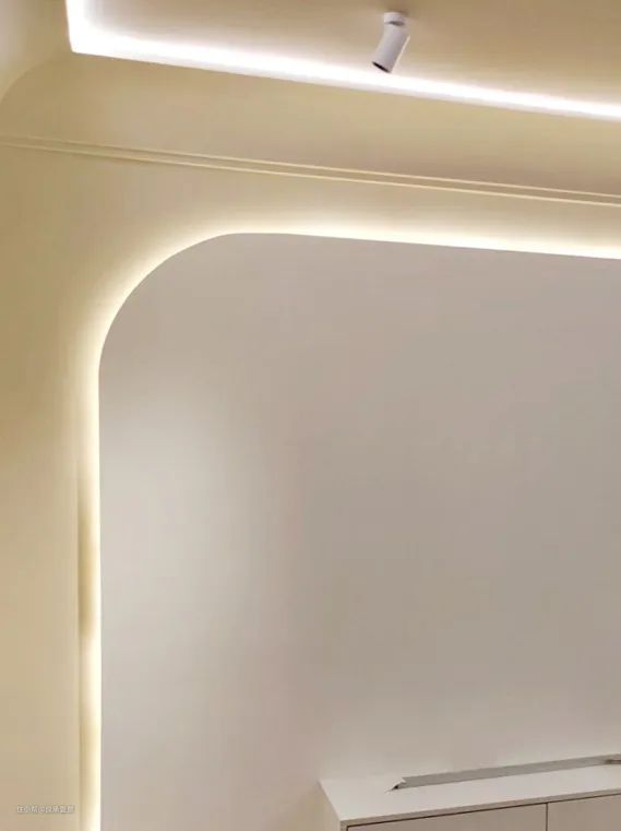 半拱形门就是一半是拱形,一半是直角,既圆又方,左右形成不规则对比,利用拱形的边框设立界限感、分割空间。做法就是只在一边装上弧形木作。