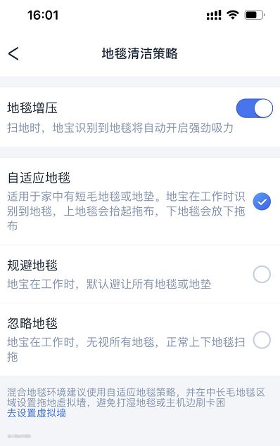 这对家中铺了大面积地毯的朋友相当友好。也方便了家里有几块地垫,经常卡住扫地机器人的朋友,降低拯救机器人的频率。