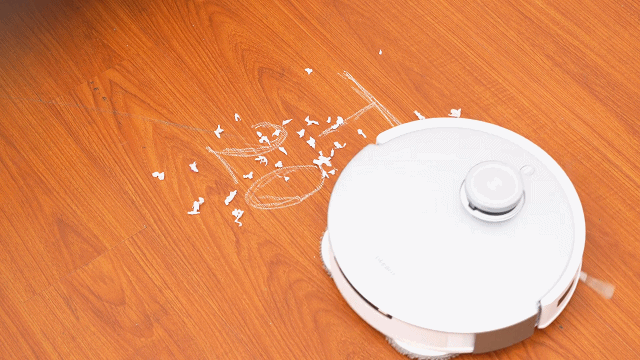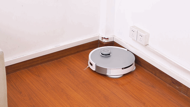 动图显示,当T20清洁到边角位置时,运动轨迹会从原来的直行清洁变成一步一转,这样方便边刷和拖布都能扫到边缝,针对边角积灰的扫拖效果更好。