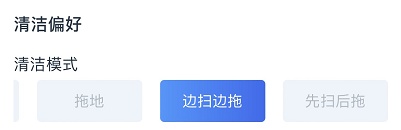 科沃斯T20有四个清洁模式,基础的单扫、单拖,组合的先扫后拖和扫拖同时。