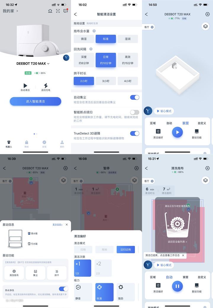 其实这些功能在机器人完成清洁任务回到基站后,程序会自行让它集尘,清洗拖布,紧接着烘干。