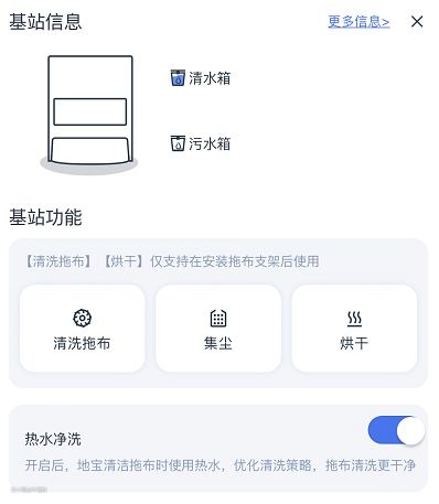但有时候,家里地面也有可能会特别脏,机器人自清洁一遍还不够,这时候就可以利用小程序上基站的这些功能,手动干预,让它多进行一两遍清洁,把自己弄干净。