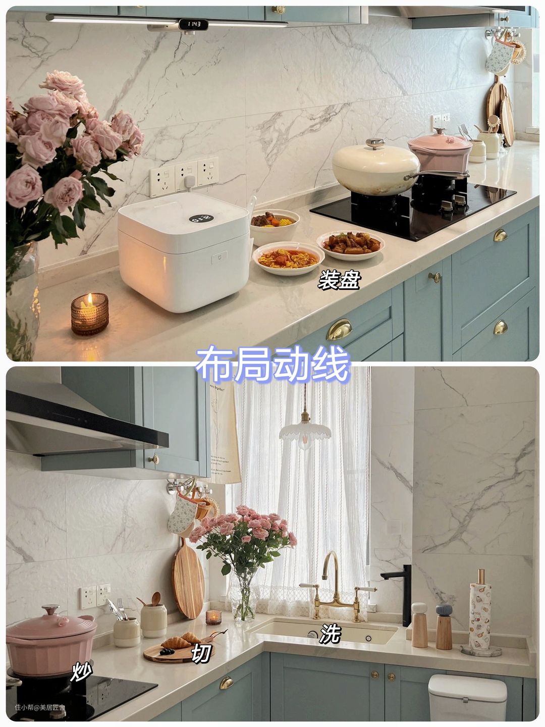 🔺布局动线:洗菜区–备菜区–烹饪区–装盘区从右至左做菜更方便省事✔