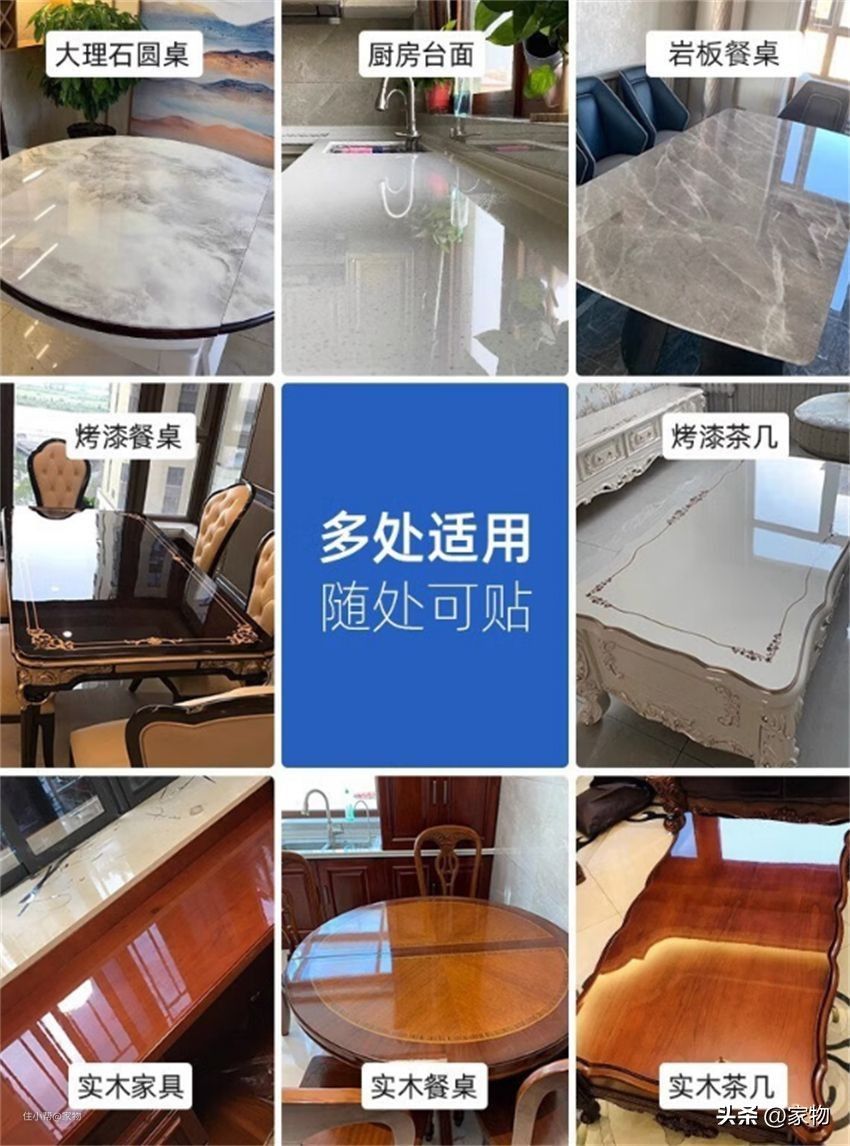 当然,这种防护膜适用于多种台面材质,还可以贴在各类家具上,比如实木餐桌、大理石茶几等,起到更好的防护功效,有需求也可以试试。