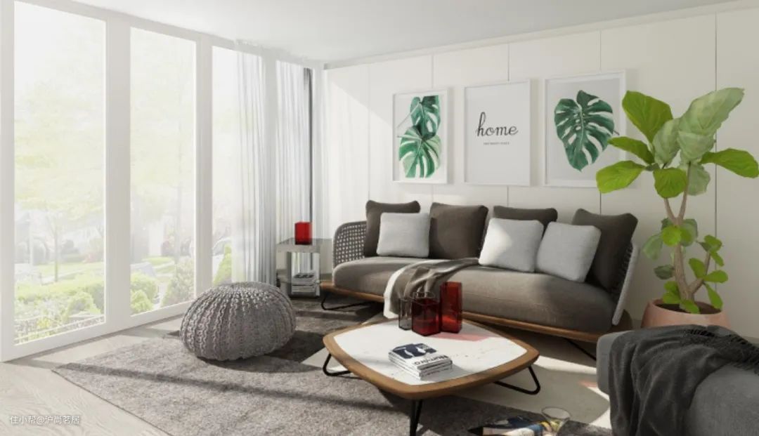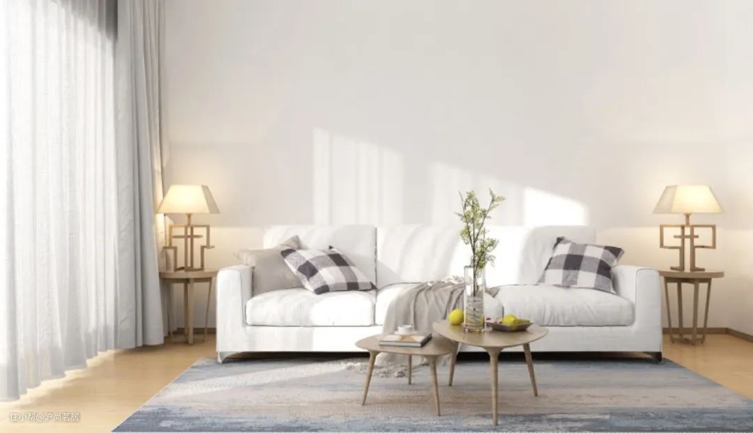 第二步:想要大白墙高级有质感,软装要选柔软的哑光的材质,尤其是沙发,这样才能显得高级有质感,因为柔光更耐看。千万不要选亮光,尤其大亮的皮质沙发和亮光材质只会让你的空间显得更加冰冷、缺乏温馨感,再加上冷白墙那就翻车啦!
