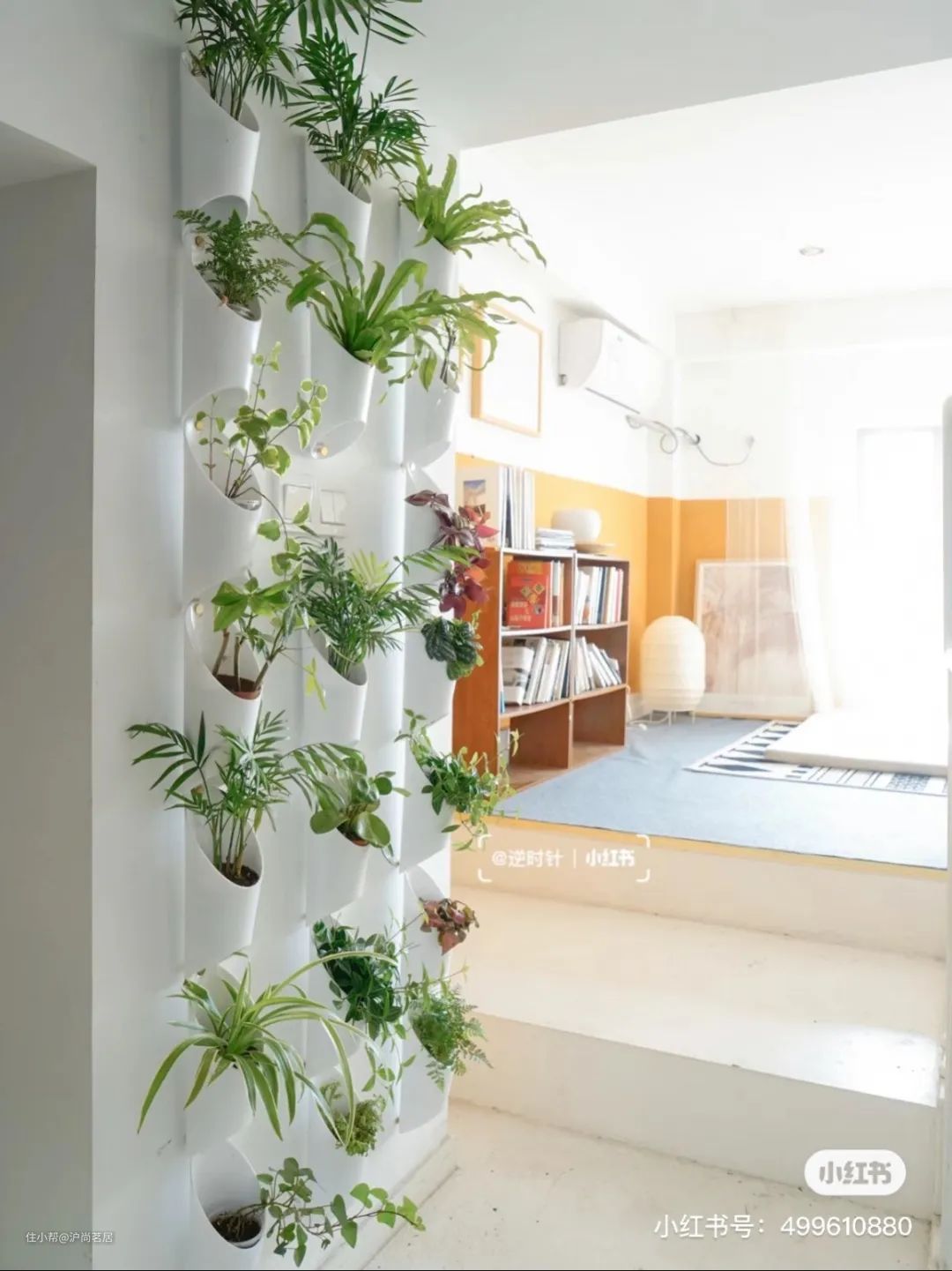 小小的绿植,它能够让简单的大白墙迸发出生命的活力的蓬勃的朝气。除了可以考虑水培式的植物,空气凤梨也是非常棒的选择,因为它本身造型多样,同时又不需要水和泥土,因此单单独放着就很美哦!