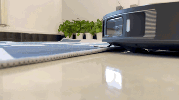 科沃斯X1pro OMNI:拖地模块安装情况下不上地毯;手动取下拖布后为扫地模式,可以上地毯。