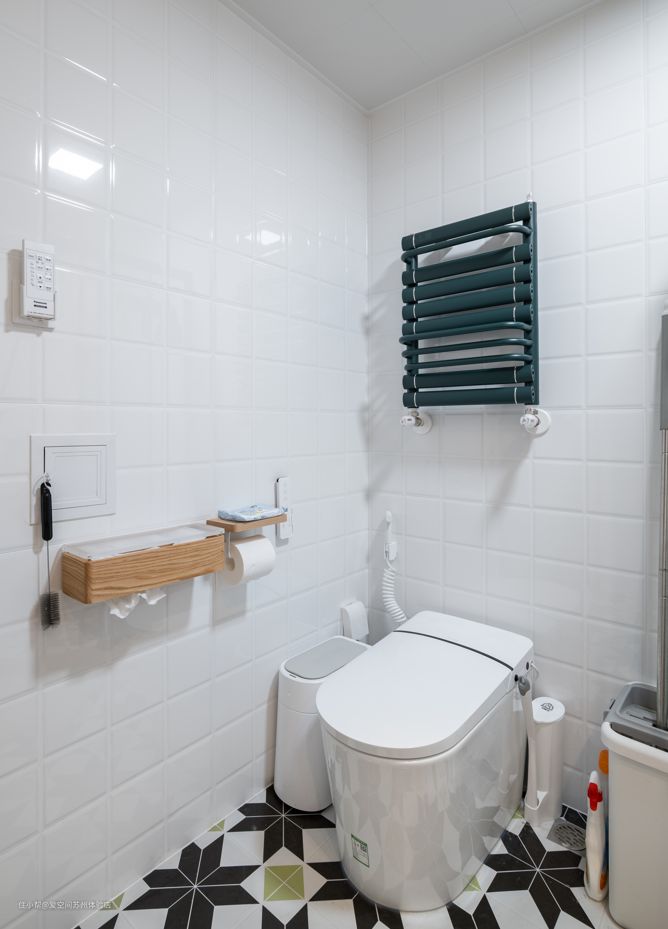 卫生间采用法尼尼智能马桶(莫迪E1系列),尺寸是689*426*471mm,自洁釉面,很好打理,且不易开裂。