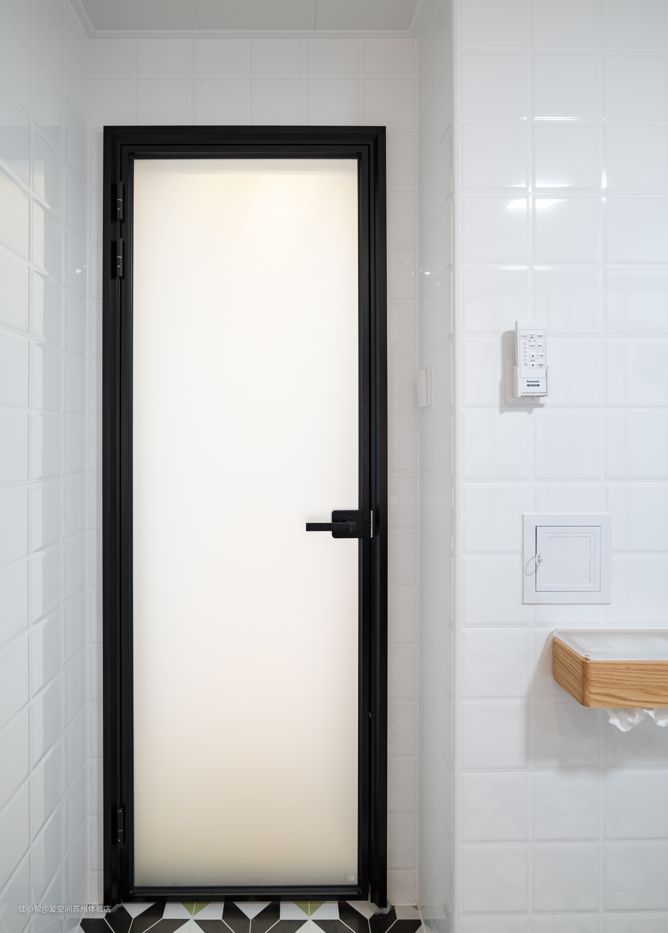 浴室门选用TATA系列品牌长虹玻璃门,两层5mm厚的长虹玻璃,隐蔽性更好,透光不透人,搭配磁吸静音门锁,进出更安全。