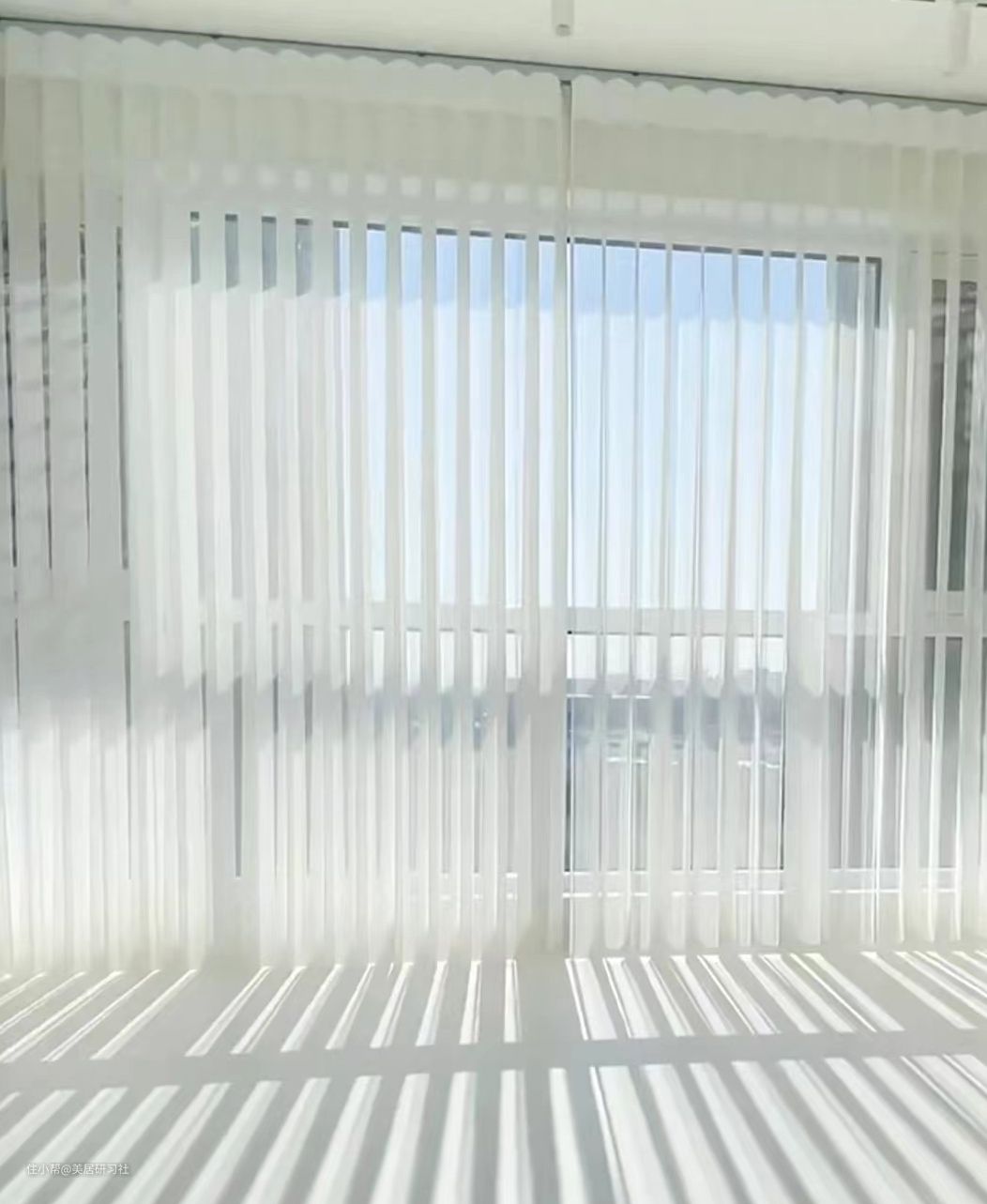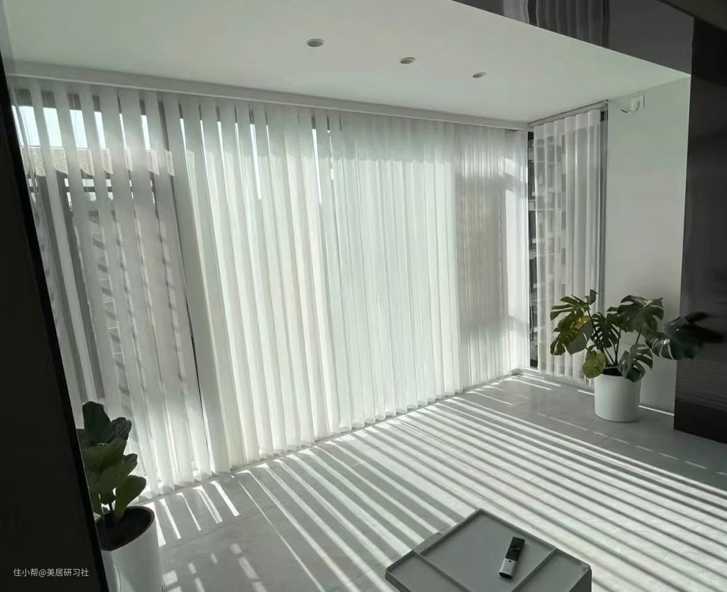 梦幻帘的设计者相当聪明,它完美地把百叶帘和布帘的优点融合起来,既有百叶帘的简洁,又有纱帘的通透感。