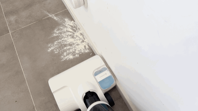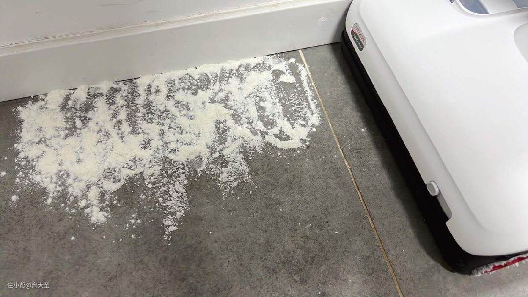 沿着墙角撒上面粉进行下沿边清洁测试;
