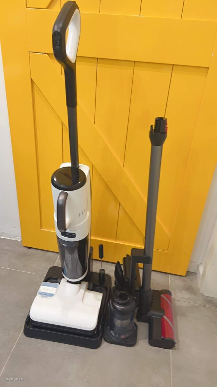 ④组装收纳后可以发现,相比常规的洗地机,多了一组吸尘器的配件;