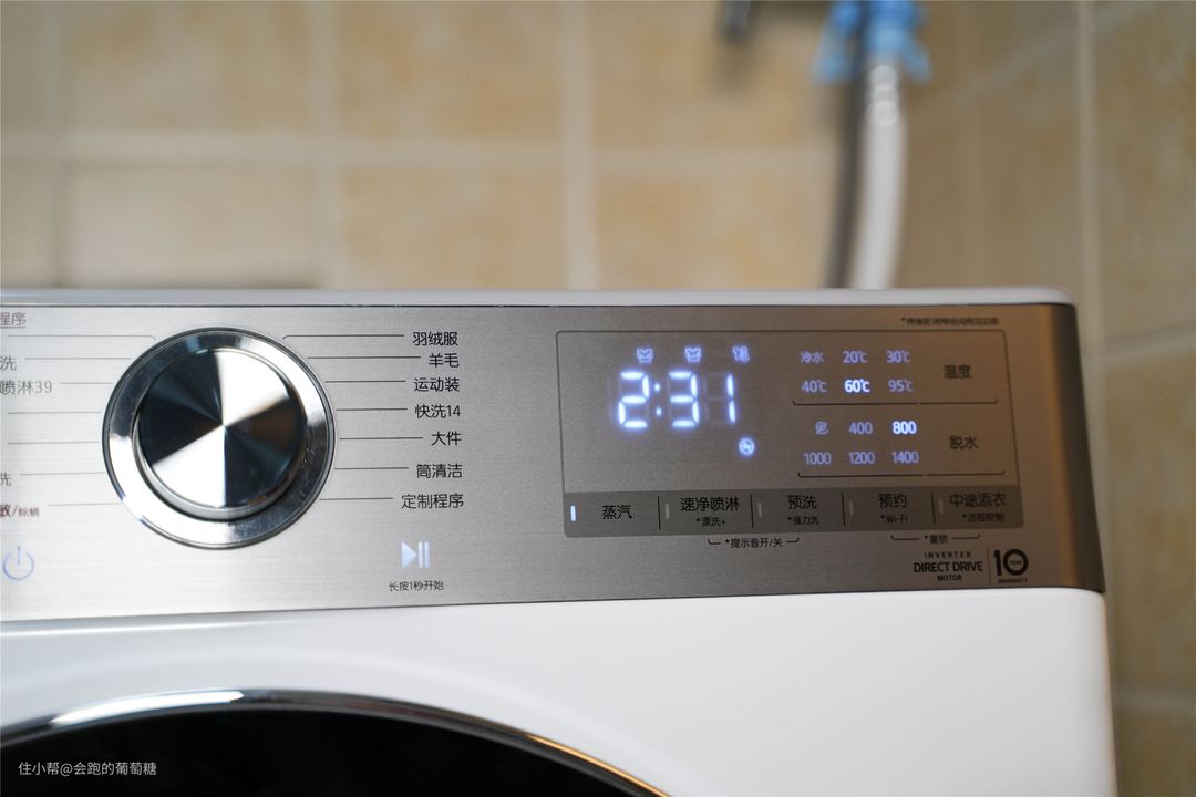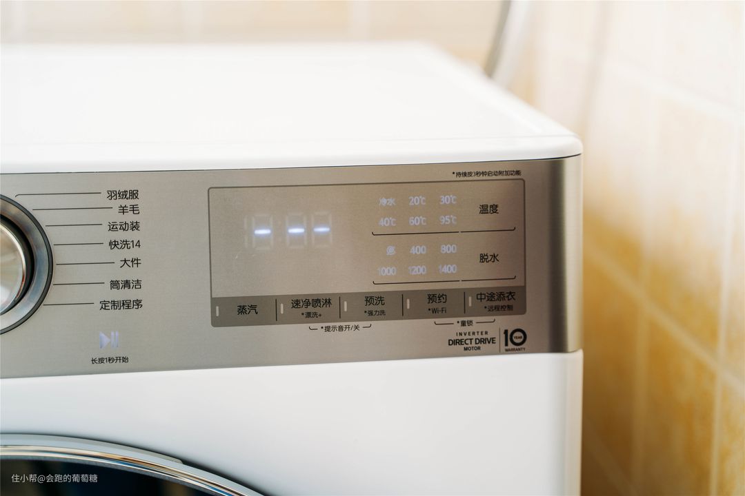 ▲面板可以说是一目了然,温度选项、脱水转速以及蒸汽洗、360°速净喷淋等特殊按钮都在上面,通过长按还可以实现另一种隐藏操作