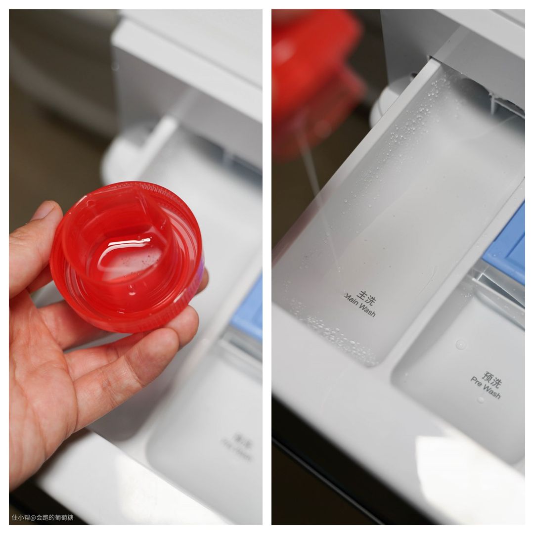 ▲导入洗衣液,不用多,半瓶盖不到就够了