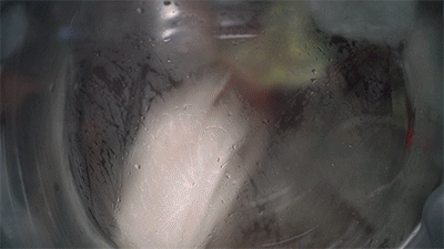 ▲洗着洗着里面就会有蒸汽冒出来啦,玻璃上都是水珠了